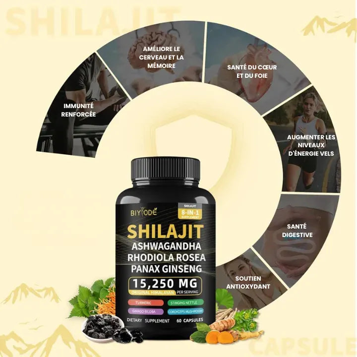 - ÉNERGIE : Boostez votre vitalité grâce au Shilajit, Ginseng et Cordyceps.